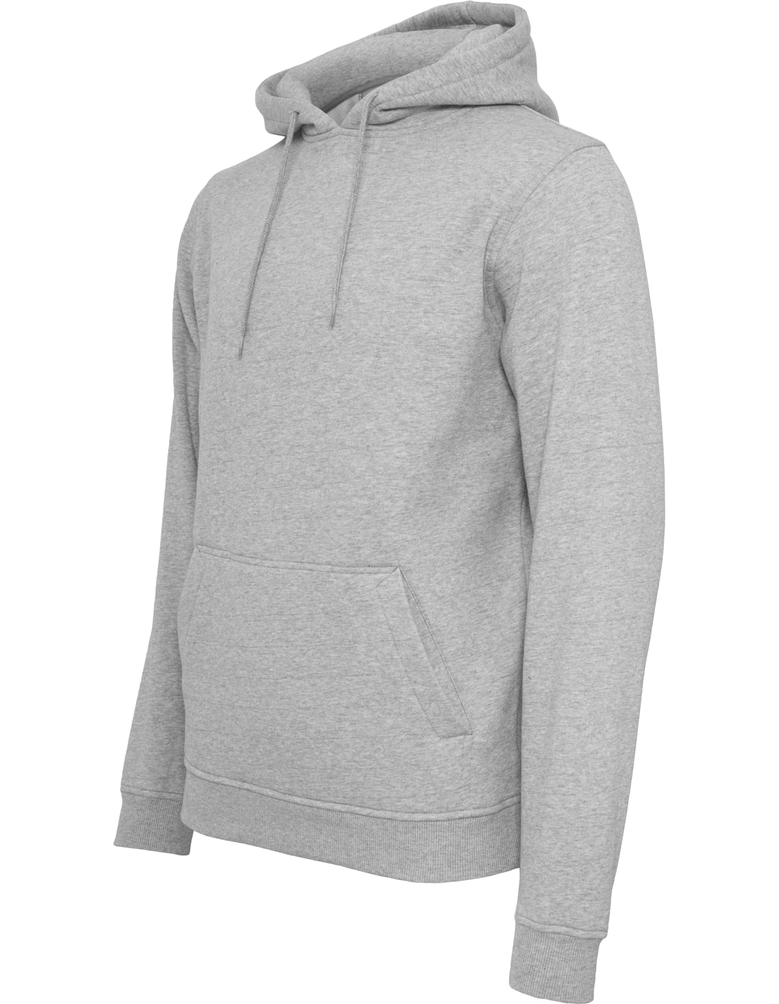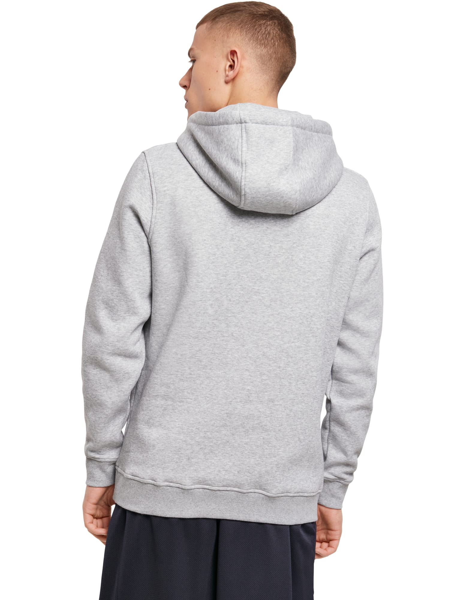 Klasyczna wysokiej jakości bluza z kapturem w kolorze melanżowej szarości.